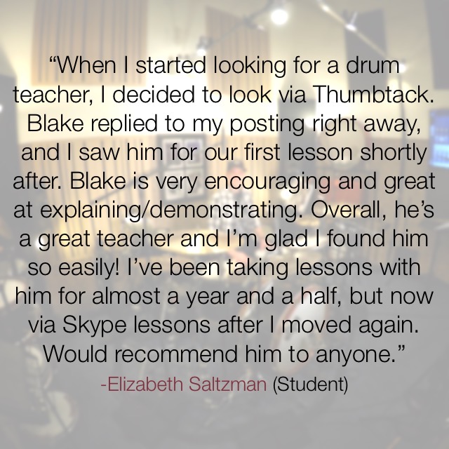 What ages do you teach? Most students are age 8+, but I’ve taught drummers as young as 6 and as old as 76.